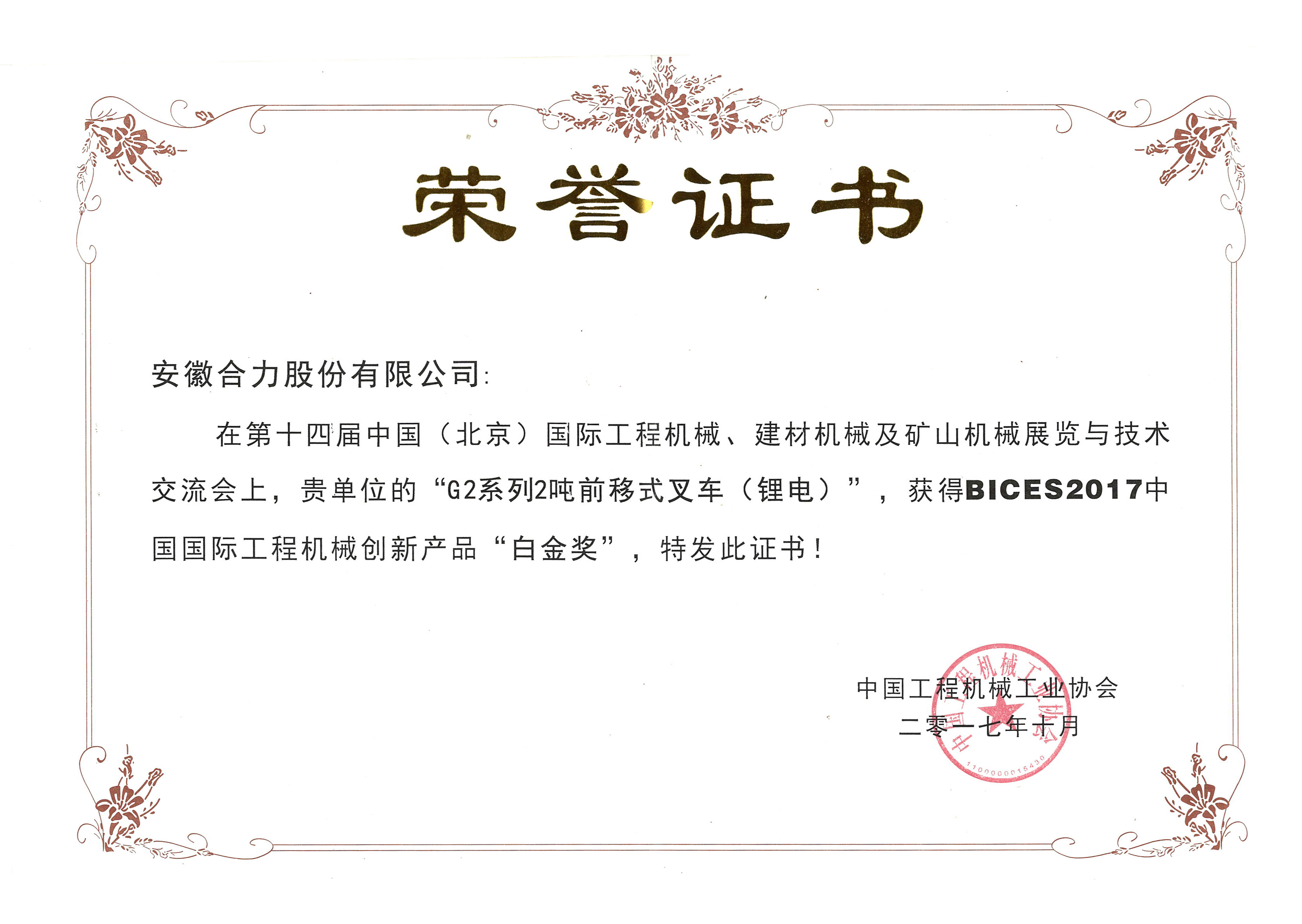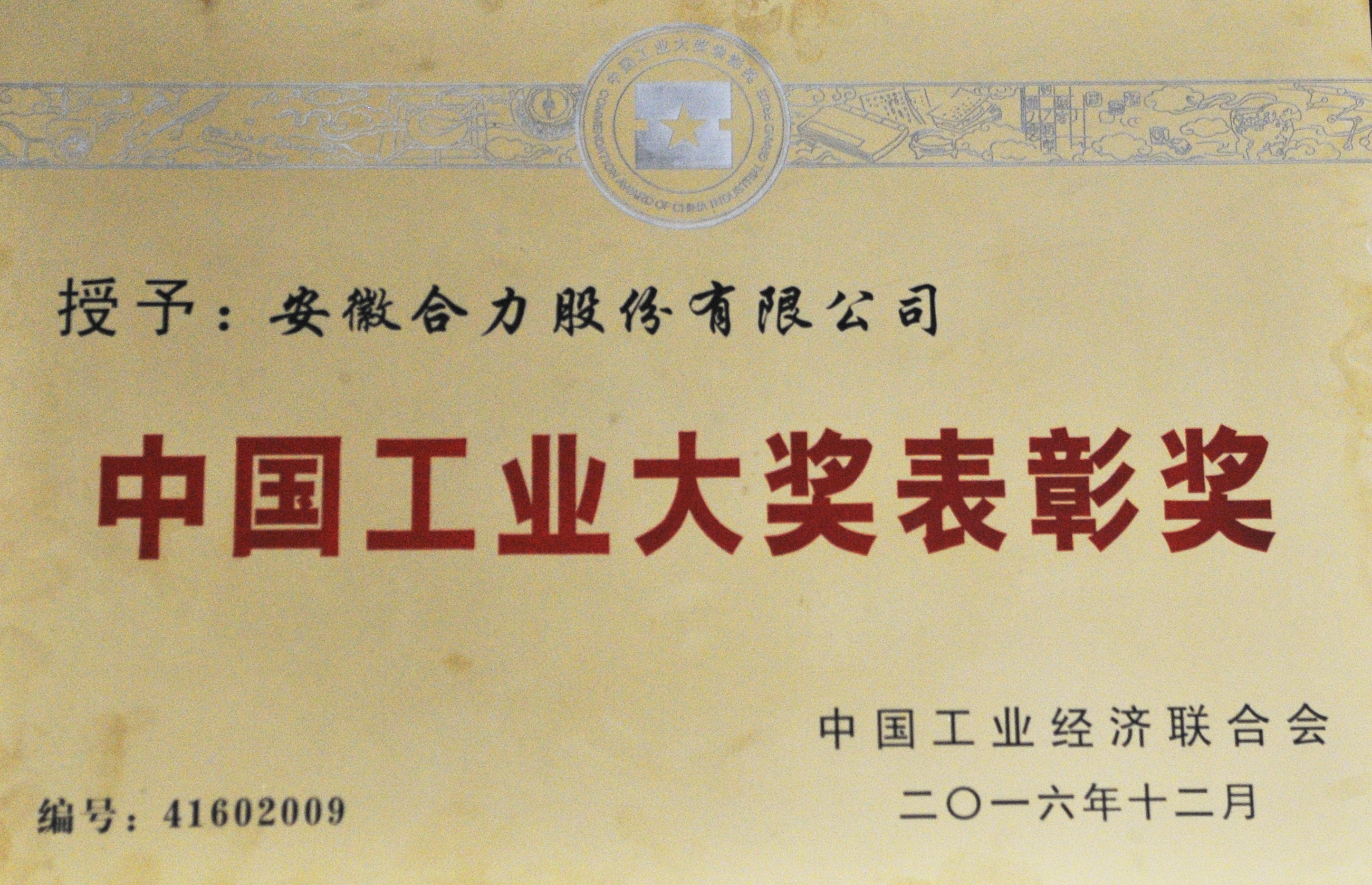 2016 安徽合力股份有限公司中國(guó)工業(yè)大獎(jiǎng)表彰獎(jiǎng)
